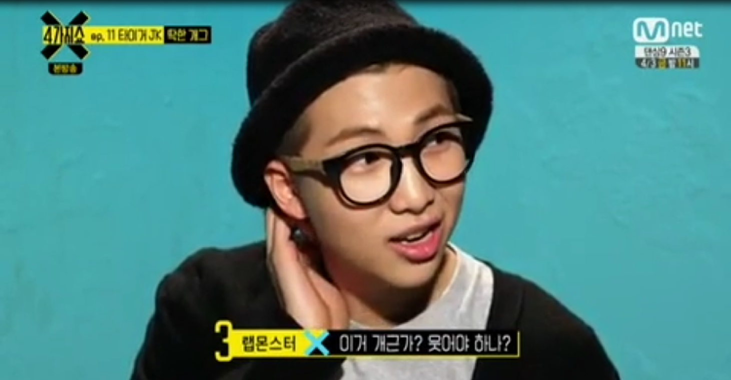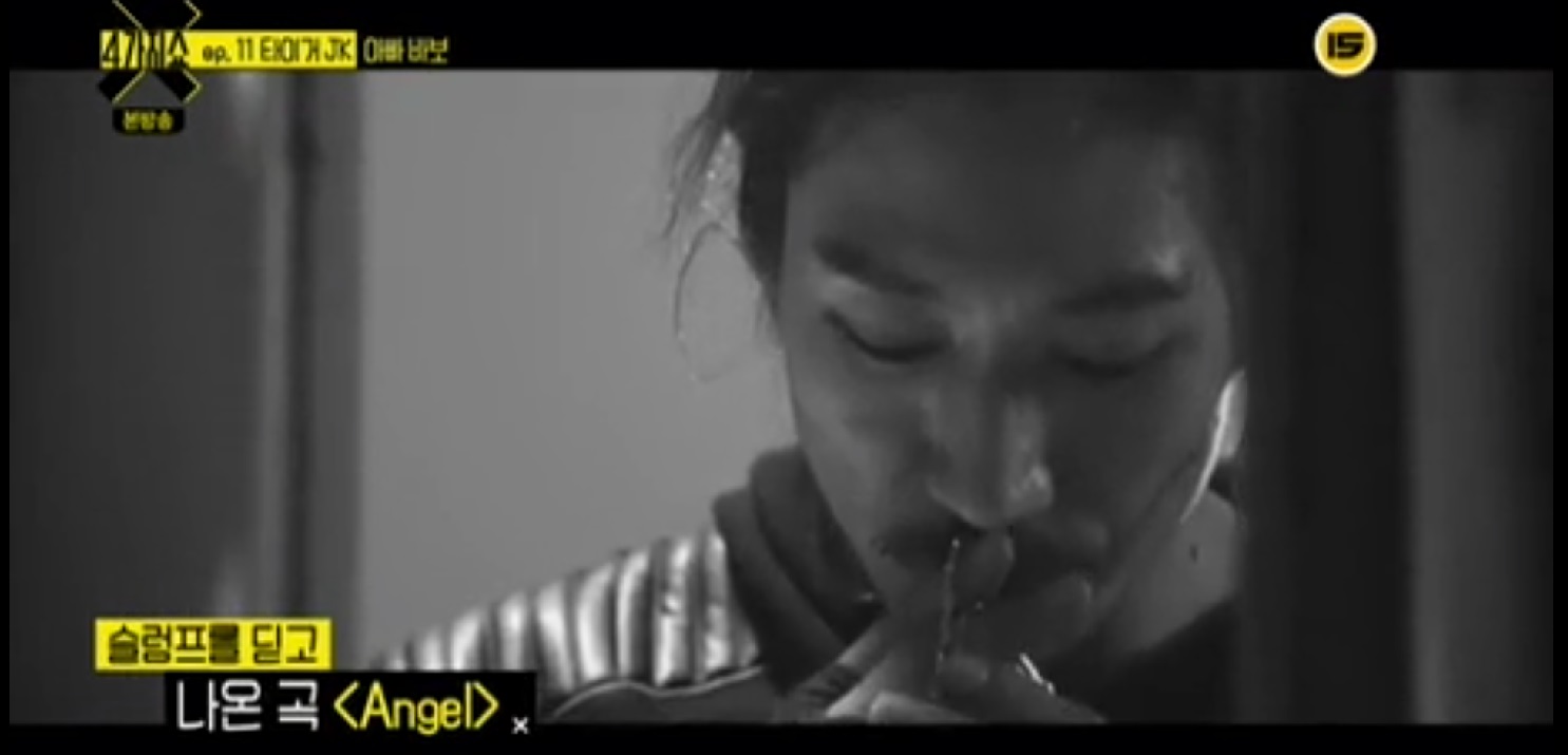 We’re taken back to when the group filmed their “Bang Diggy Bang Bang,” video. Tasha is missing from the room, and JK and Bizzy stand in awkward silence. JK says that without a script and without Tasha, both he and Bizzy are useless. Rap Monster arrives a few minutes later without knowing MFBTY is in the middle of filming for 4ThingsShow. He is caught off guard at first, but tells the camera that Tiger JK is his idol. JK replies, “You’re my idol (play on words).” JK comments that Rapmon changed his view of idol rappers. Rapmon’s good-natured personality and natural skills rapping left a positive impression.