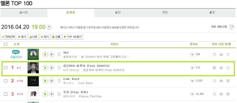 Sidenote: Bizzy’s single hit #1 on Melon charts within 24 hours of release. It is available for download on Itunes.