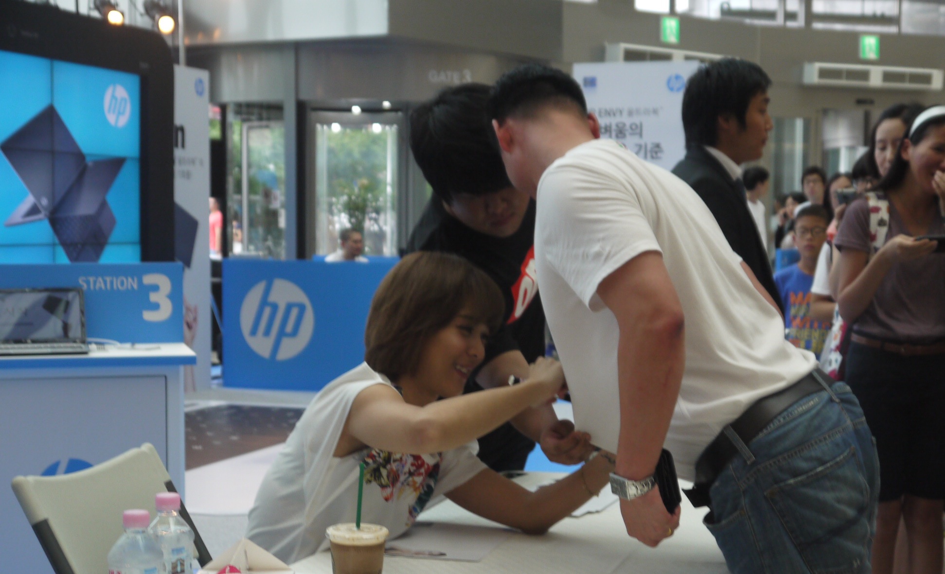 Despite getting rest, the team was still physically tired and anxious for the big show. They were the second to last act, the lead up into Shinee. They stopped for a few minutes prior to put on a positive face for us, even giving us this fun treat.