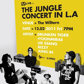 On December 2nd, “M Live by CJ: The Jungle Concert in L.A” will be the first Korean hip-hop concert held in the United States. The concert will feature Drunken Tiger (Tiger JK), Yoon Mirae (Tasha), Leessang, Bizzy, and Jung In at the Wiltern.