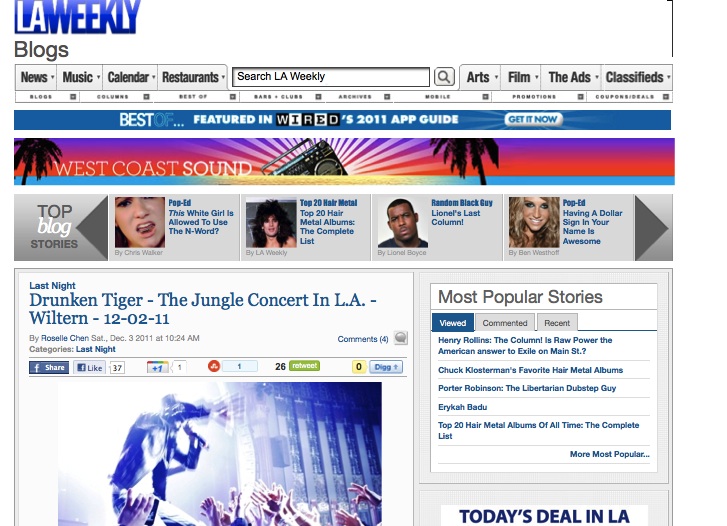 The name Drunken Tiger has not headlined a US concert in nearly 7 years. So on the eve of his much anticipated Los Angeles concert, the Los Angeles Times has also taken notice of the artist whose name will be highlighted on The Wiltern’s distinguished marque tonight.