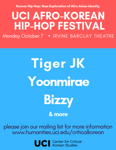 We have received confirmation from Feel Ghood Music and UC Irvine Center for Korean Studies that MFBTY will be performing Monday, October 7th at UC Irvine. Tiger JK is also expected to partake in a panel discussing Korean hip-hop roots. The below is the preliminary announcement image, but we encourage people to join UCI Korea’s mailing list for immediate developing details.